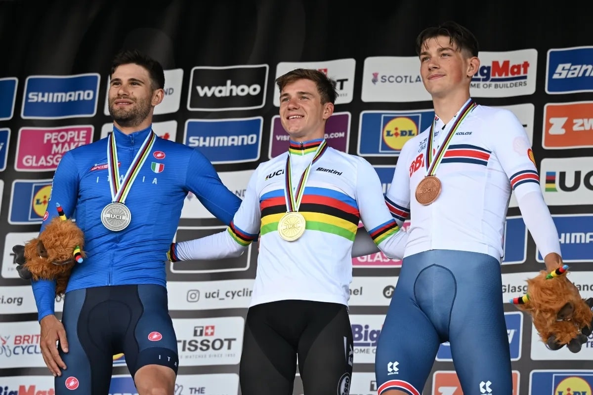 After the exciting online race of the Cycling World Championship a few days ago, it was the turn of the individual fight against the clock on the road, with an unusual length of 47.8 kilometers and a tough cobbled final climb to the castle of Stirling. The winner is a Belgian: Remco Evenepoel Of the 78 participating cyclists, the Belgian rider signed the victory with a time of 55:19” at an average speed of 51.84