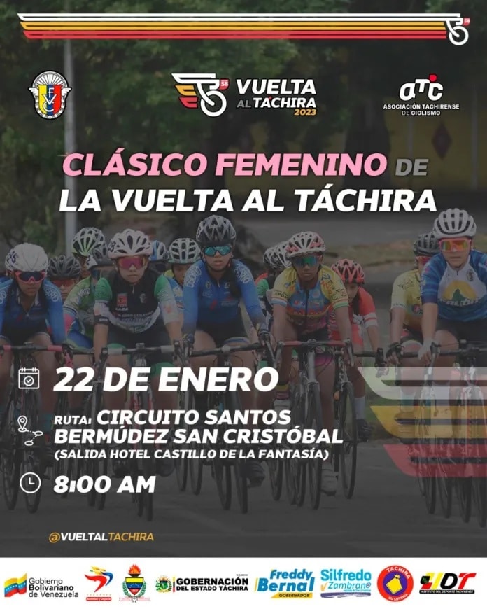 The 2023 edition of the Vuelta al Táchira will have the participation of the ladies with the celebration of the First Women’s Classic, which will be taking place in the traditional circuit of Avenidas España and 19 de Abril, known as “Santos Rafael Bermúdez” and that It will run prior to the start of the eighth and final stage (January 22) of the “Great of America”. The organizers of the 58th edition of the Vuelta