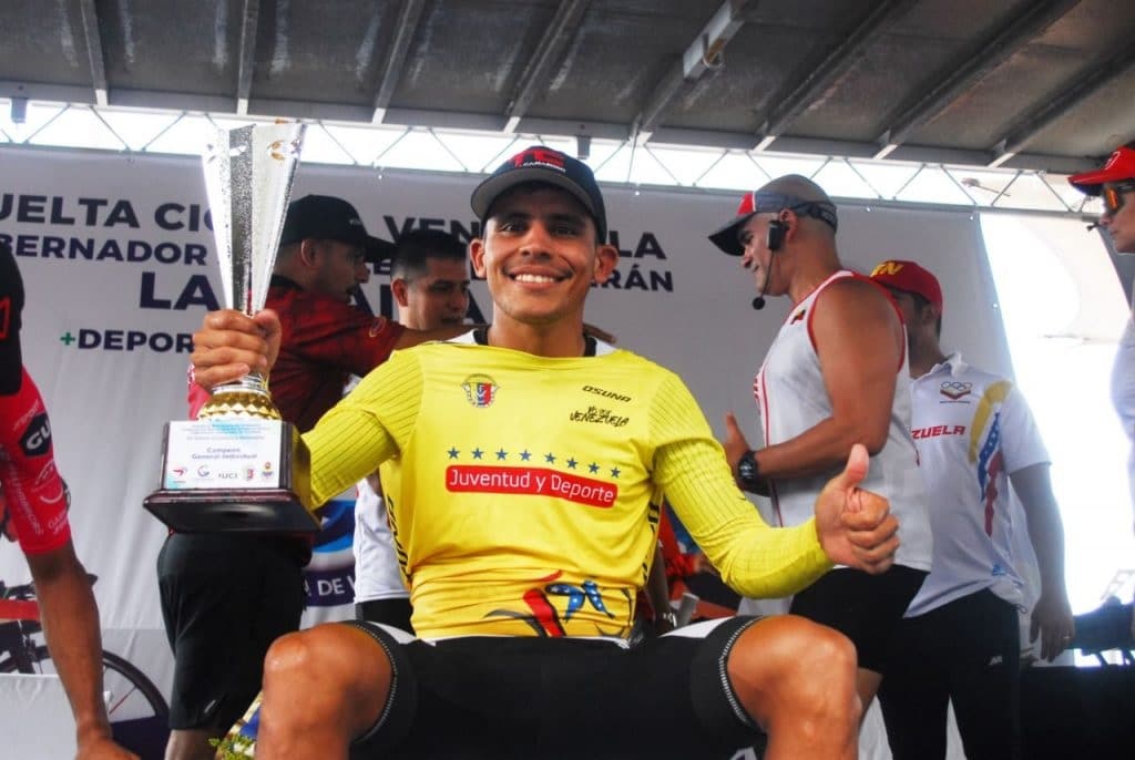 Team Medellín achieved the one, two and three of the fifth stage of the 59th Vuelta a Venezuela, against a heavy downpour, with the victory of Víctor Ocampo, escorted by Cristhian Montoya and Weimar Roldán, but Luis Gómez (Team Carabobo) kept for third consecutive day the leader’s shirt. Ocampo, champion of the 2021 Junior Pan American Games time trial, won the fifth fraction over 187.6 kilometers starting at the Ortiz Circuit and finishing in Puerto