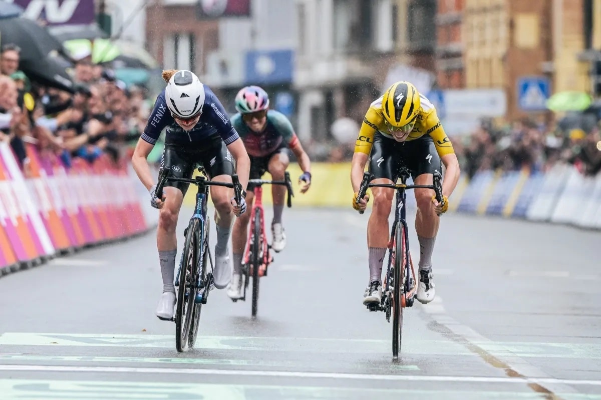 In a thrilling sprint of three, Puck Pieterse emerged victorious on the fourth stage of the Tour de France Women’s 2024. The Fenix-Deceuninck rider defeated Demi Vollering (Team SD Worx – Protime) and Katarzyna Niewiadoma (Canyon//SRAM Racing) in Liège. The 122-kilometer stage started in the tourist town of Valkenburg (world famous for the Amstel Gold Race), to arrive in Liège, Belgium, in a sort of combination of the Amstel at the beginning of the stage