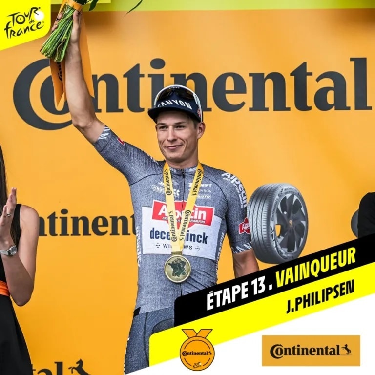 Belgian Jasper Philipsen did his thing again in the 111th edition of the Tour de France, this time coming out victorious in stage 13 of the French round by winning the sprint duel with Belgian Wout van Aert (Team Visma | Lease a Bike), who came in second. The Alpecin – Deceuninck sprinter took the win after 165.3 kilometers between Agen and Pau. In third position came German Pascal Ackermann (Israel – Premier Tech) and