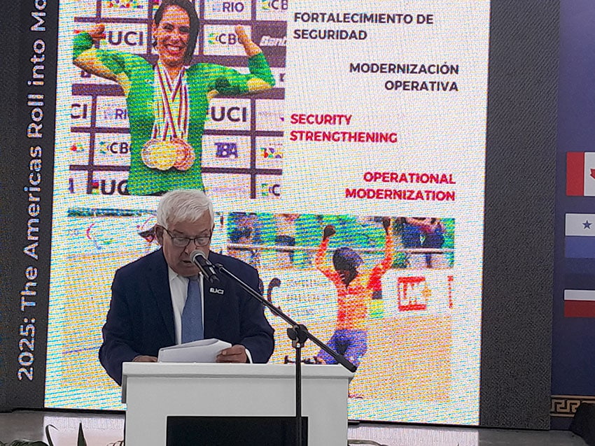 El titular de la UCI fue uno de los oradores de la sesión, en la que resaltó los buenos pasos dados por COPACI en materia de superación, participación y resultados, tanto desde las edades tempranas hasta el alto rendimiento. Asimismo, invitó a todas las federaciones a inscribirse para el Campeonato Mundial de Ruta que se desarrollará en Montreal, Canadá, en septiembre, con el correspondiente Congreso de la UCI.